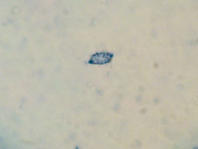 Vielleicht der interessanteste Fund, weil ca. 8cm unter dicker Laubschicht an einem dünnen Totholzästchen wachsend, der Weiche Stachelsporling (Trechispora mollusca). Die Sporen sind noch nicht ganz ausgereift, aber in Kombination mit dem wabenförmigen Wachstum, und der gesamthaft watteartigen Konsistenz gibt es wohl keine Alternative. Ich frage mich, ob man diesem Pilz ein hypogäisches Wachstum bescheinigen kann. Ich habe ihn bisher stets an der lichtlosen Unterseite von morschem Holz gefunden. Diesmal sogar unter der Laubschicht, wo er die noch lebenden Wurzeln der umgebenden Bäume als Wachstumsunterlage benutzt hat.