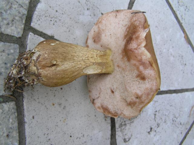 im Wald waren die Poren noch ganz hell, heute abend eher schmutzig rosa. Das Fruchtfleisch weiß.