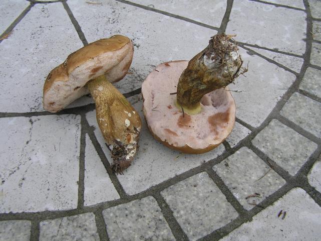 im Wald waren die Poren noch ganz hell, heute abend eher schmutzig rosa. Das Fruchtfleisch weiß.