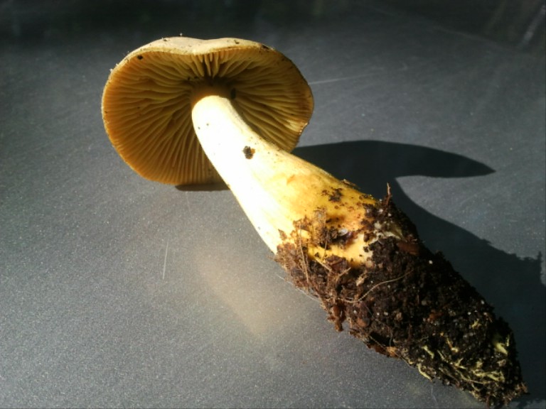 ich tippe auf Grünlinge: Hut ca. 4 cm, sehr gelb, in der Mitte bräunlich und bissel geschuppt, Stiel gelb ca. 6 cm hoch und ca.12mm dick, bissel faserig und fest, mit bräunlichen Stellen. Lamellen waren gelb.