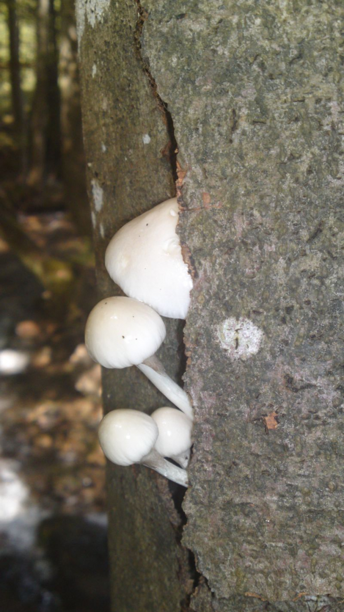 Jetzt fällt mir grad auf, daß ich Euch die Fotos der Buchen-Schleimrüblinge (Beringter Schleimrübling/Oudemansiella mucida) vorenthalten habe... Ts ts ts...
