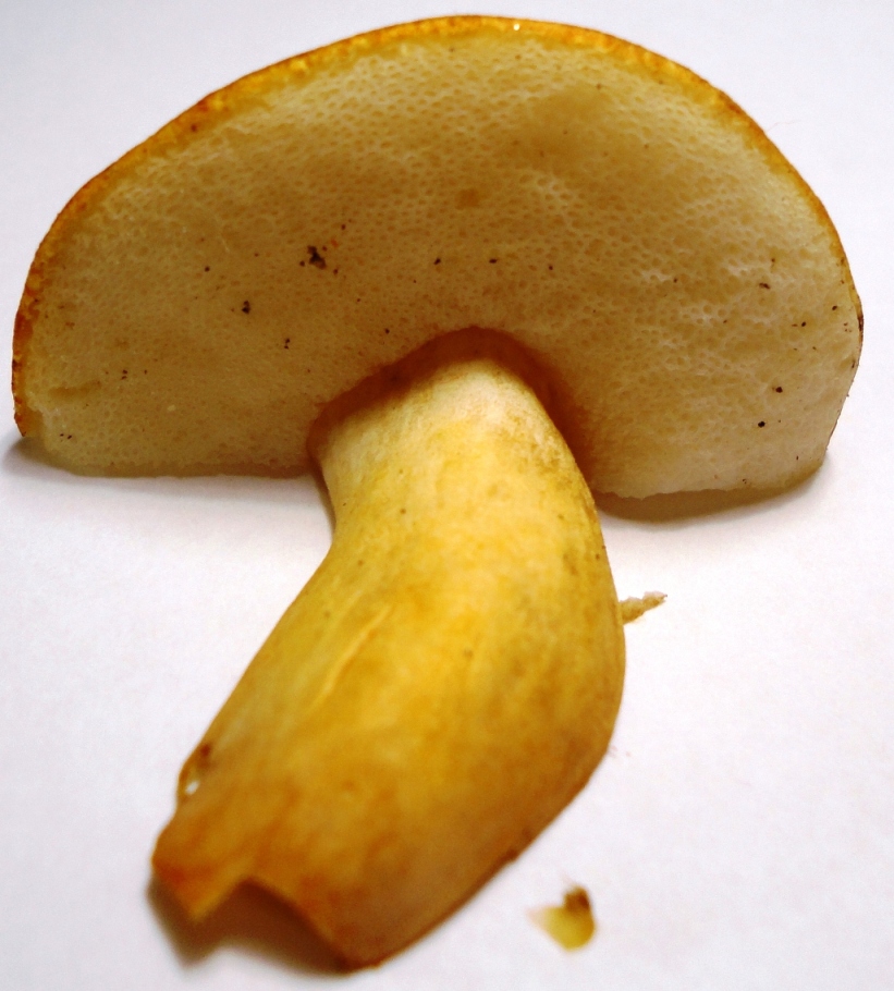 einen Schmierröhrling sehe ich hier nicht. Suillius collinitus hat gelbes Fleisch, dieser hier aber eindeutig weißes und der Stiel wäre auch nicht hohl.