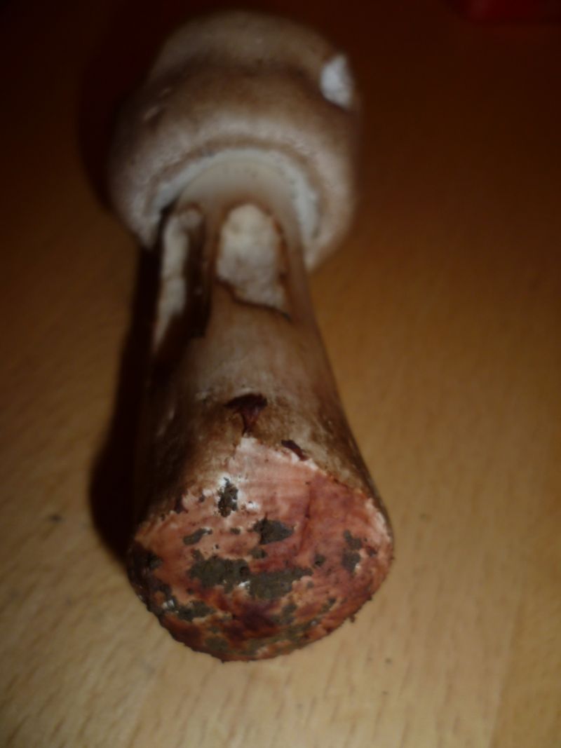 • Da die Fk röten, ist der Wiesen-Champignon auszuschließen. Schau mal nach, ob der Pilz nicht doch bei Ankratzen an der Stielbasis gilbt (nur ankratzen!).