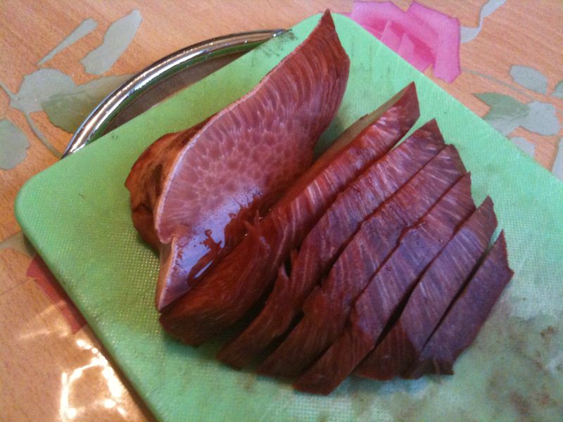Konsistenz und Aussehen des frischen Pilzes sind super. Man hat tatsächlich den Eindruck es hier mit einem Stück Fleisch zu tun zu haben. Bei den Angelsachsen wird die Ochsenzunge / der Leberreischling (Fistulina hepatica) daher auf als "Beefsteak Fungus" oder "Poor Man's Beefsteak" bezeichnet. Warum er als Steak des armen Mannes bezeichnet wird sollte ich noch erfahren.