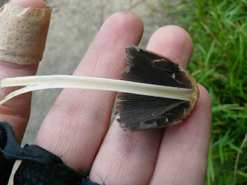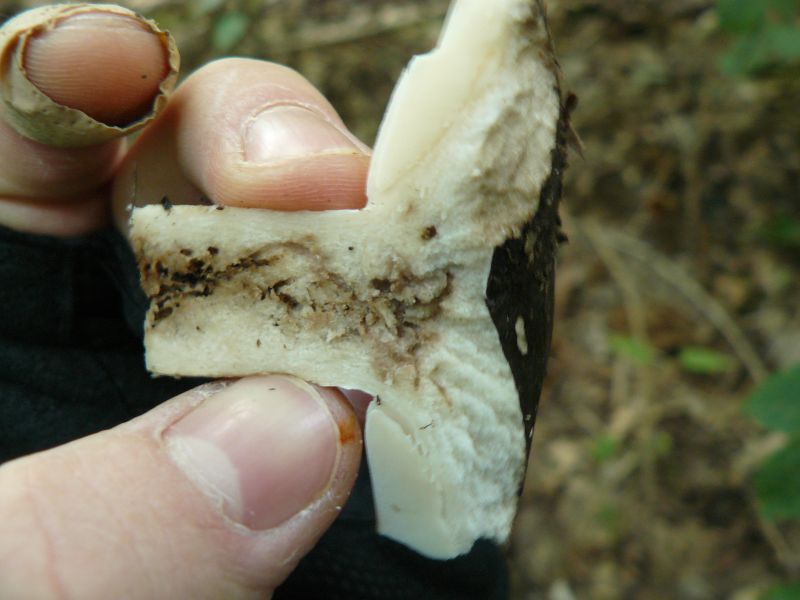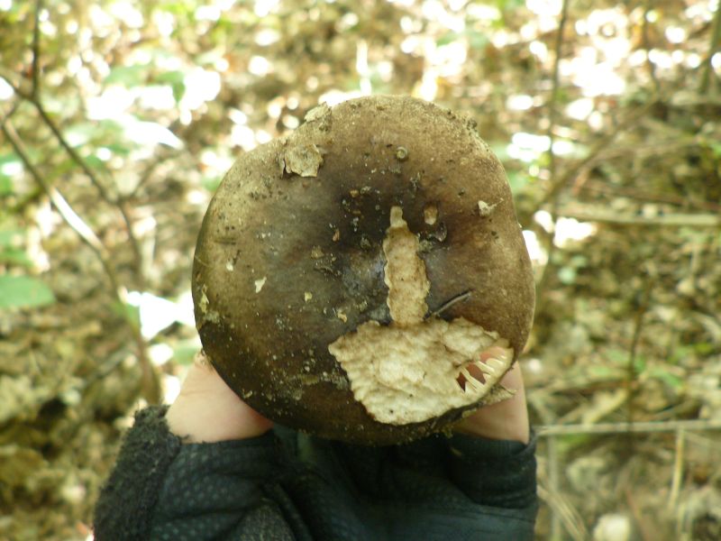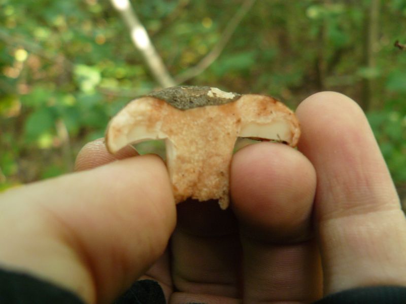 -Hut gelblich, nach unten dunkler bis (bei älteren sehr dunkel)