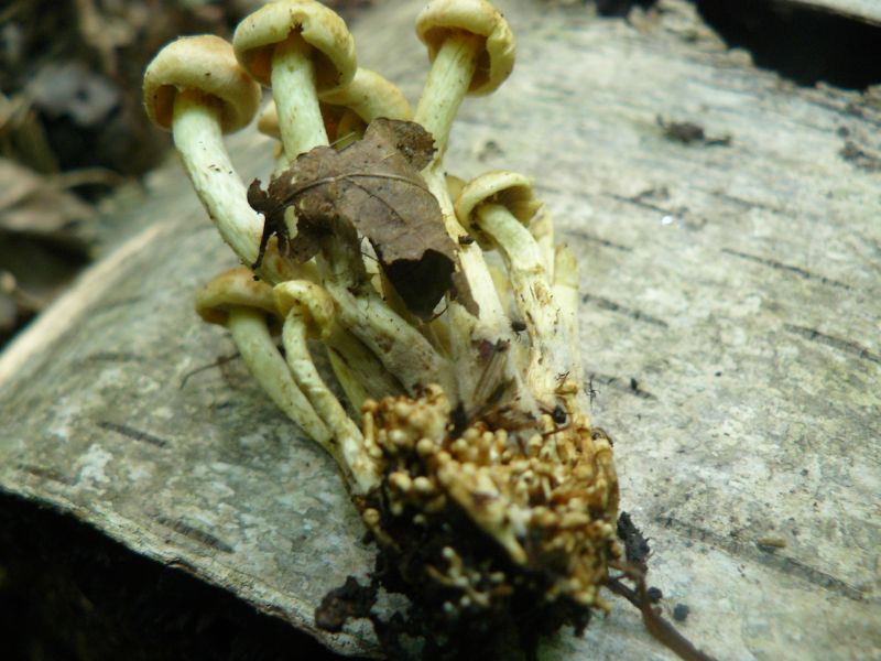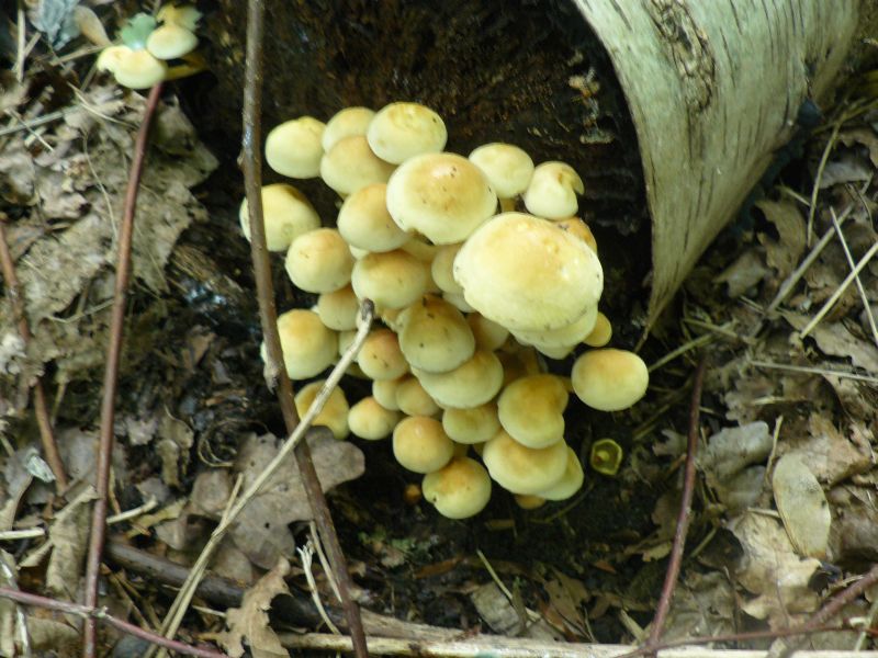 - wuchs an einem abgefallenem Birkenstamm und in der Nähe davon auf der Erde