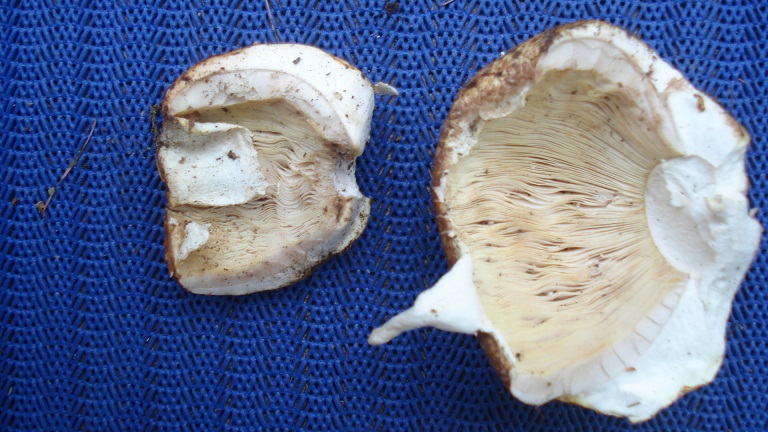 Die beiden hielt ich auf den ersten Blick - wegen dem massigen Stiel und dem kegeligen Hut - für Röhrlinge. Sie entpuppten sich aber als Lamellenpilze.