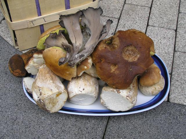 die Steinpilzschwemme in meiner Gegend (westliche Wetterau) hält an. Es finden sich ziemlich viele überalterte Exemplare aber auch schöne frische Steinpilze. Die Gallenröhrlinge der letzten Wochen sind komplett verschwunden. Als Highlight ein Büschel Herbsttrompeten (Craterellus cornucopioides), mein persönlicher Erstfund in dieser Gegend.
