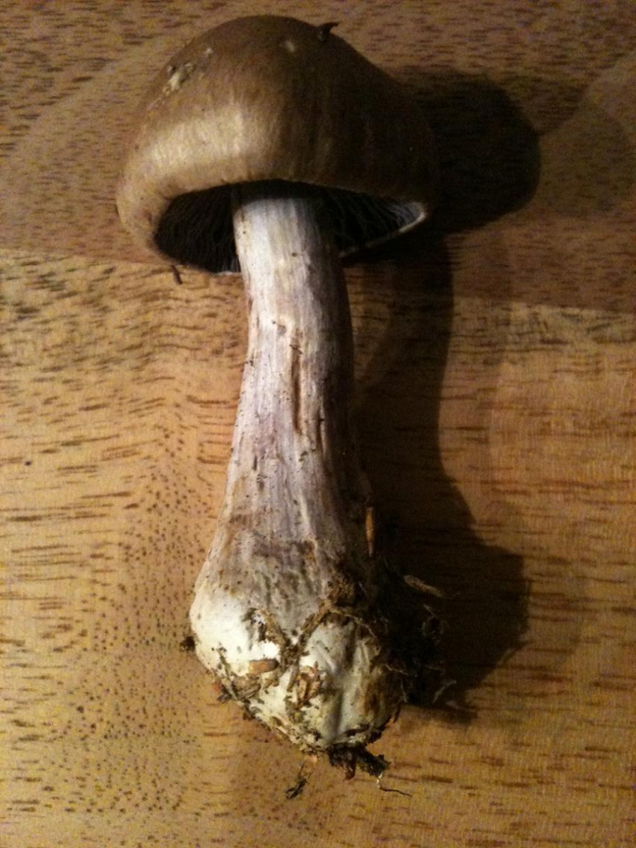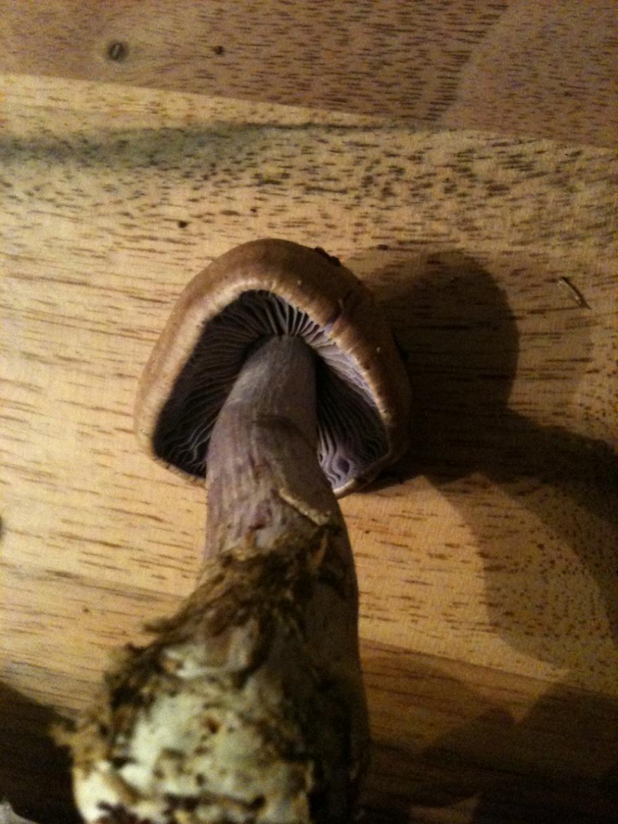 Der Pilz ist etwa 8cm hoch und der Hut 3.5cm breit. Er wirkt bei den Lamellen etwas violett gefärbt.