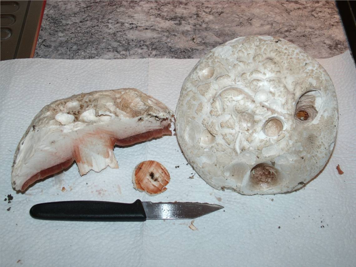 der Karbolegerling verfärbt sich beim Schnitt durch die Knolle Chromgelb.