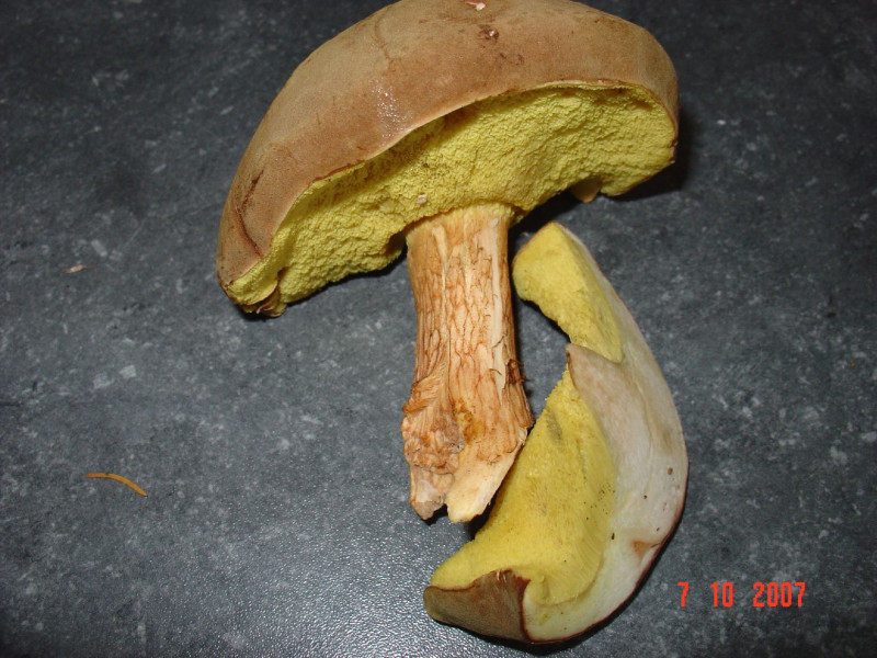 schaut euch mal meine heutigen Funde an. Bild 1-6 weiß ich nich so recht. Ich tippe bei 1+2 auf Flockenstieliger Hexenröhrling bei Bild 3-6 weiß ich gar nicht......die Röhren sind extrem Gelb das sieht man auf den Bildern nicht so...essbar????