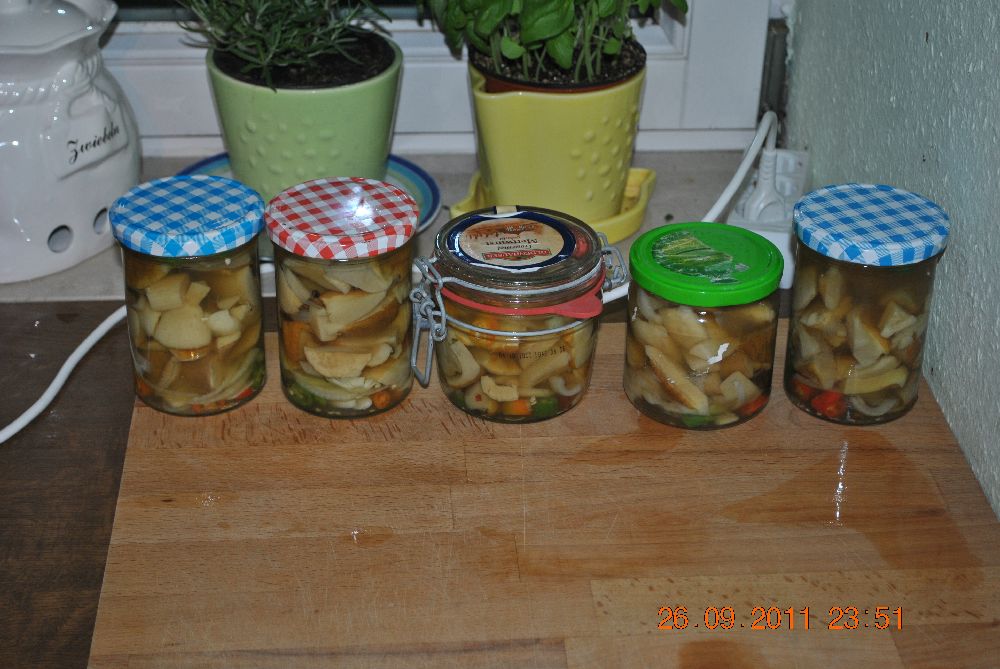 Hallo,schöne funde die du da hast (vorallem das Augustiner ;)). Die Steinpilze sind in Öl eingelegt oder?