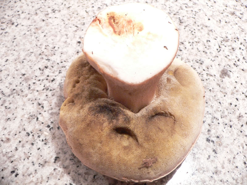 bin gerade aus dem Wald mit folgendem Röhrenpilz gekommen. Er riecht wie ein Maronenröhrling, verfärbt sich aber nicht blau.