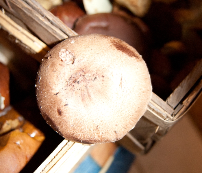 Die Marone im rechten Korb links oben halte ich sogar für gefährlich. Da kannst du dir eine Vergiftung einfangen. Denk daran, Pilzeiweiß ist tierischem Eiweiß ähnlich und verdirbt genauso. Niemand würde altes Gammelfleisch essen, bei Pilzen sehe ich das immer wieder.