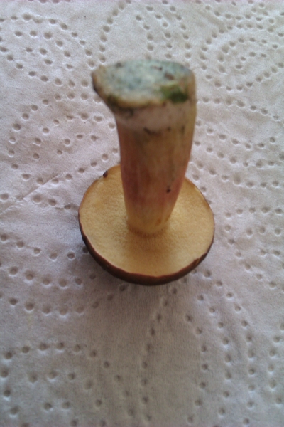 Hab sie abgeschnitten, weil ich hauptsächlich Maronen mitgenommen habe. Bei den noch nicht bestimmten hab ich dann gar nicht mehr daran gedacht. War doof.