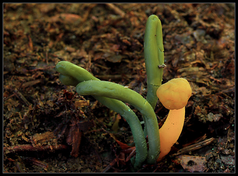 Fruchtkörper 1-3 mm breit, ohne Randhaare, aber mit steriler Randzone, ohne Stielteil, auf Erde in Verbindung mit Moosen.