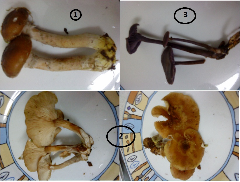 Die violetten Lacktrichterlinge sind halbwegs erkennbar, ob deine Bilder auch Stockschwämmchen zeigen wage ich zu bezweifeln. Stockschwämmchen haben am Stiel unterhalb der Ringzone deutliche braune Schüppchen, leider sind die Bilder zu unscharf um das für mich zu erkennen.