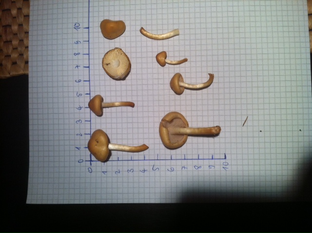 sind ziemlich klein und nicht sehr deutlich, Deine Bilder. Leider fehlen auch völlig die Angaben über die Fundorte, Begleitbäume, Beschaffenheit der Pilze, Geruch etc. Lies dazu bitte diesen Thread: http://www.pilzforum.eu/board/…ngaben-zur-pilzbestimmung