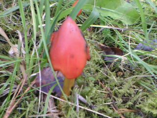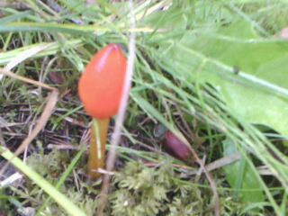 sieht nach einem Saftling aus.. möglicherweise der Kegelige Saftling (Hygrocybe conica).
