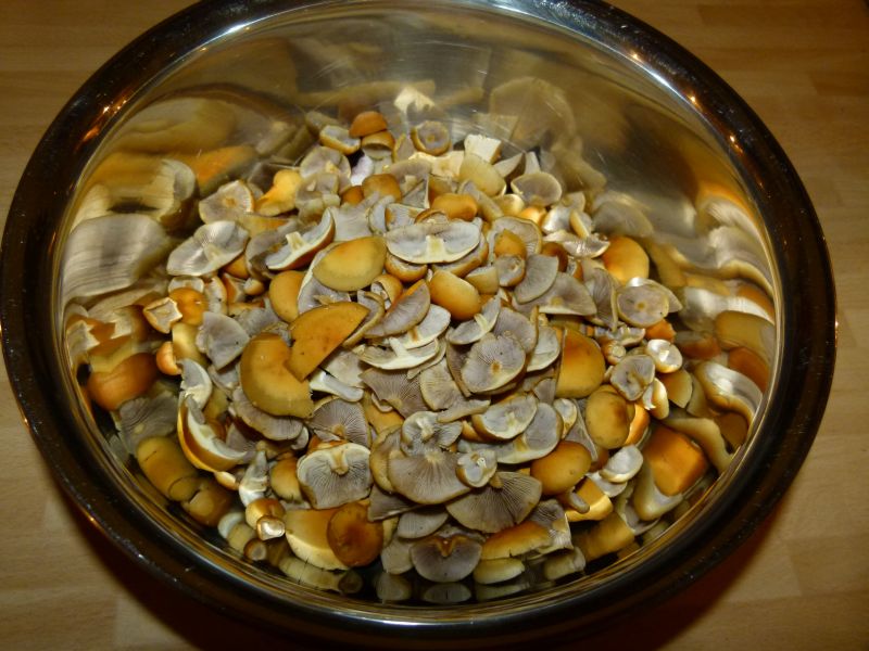 Auch eine Vermsichung mit grünblättrigen scheidet aus, da ich jeden Pilz sowohl beim pflücken, als auch beim putzen genau angeschaut habe. Zudem stammten alle Pilze von einem Stubben und einer Wuchsstelle.