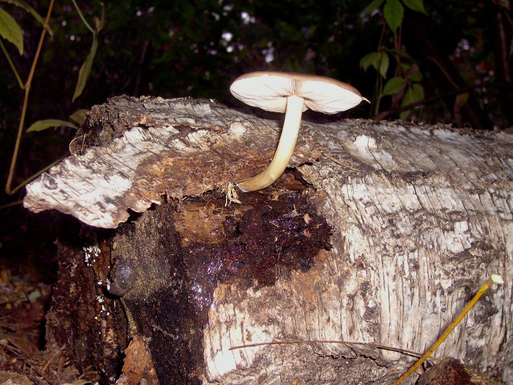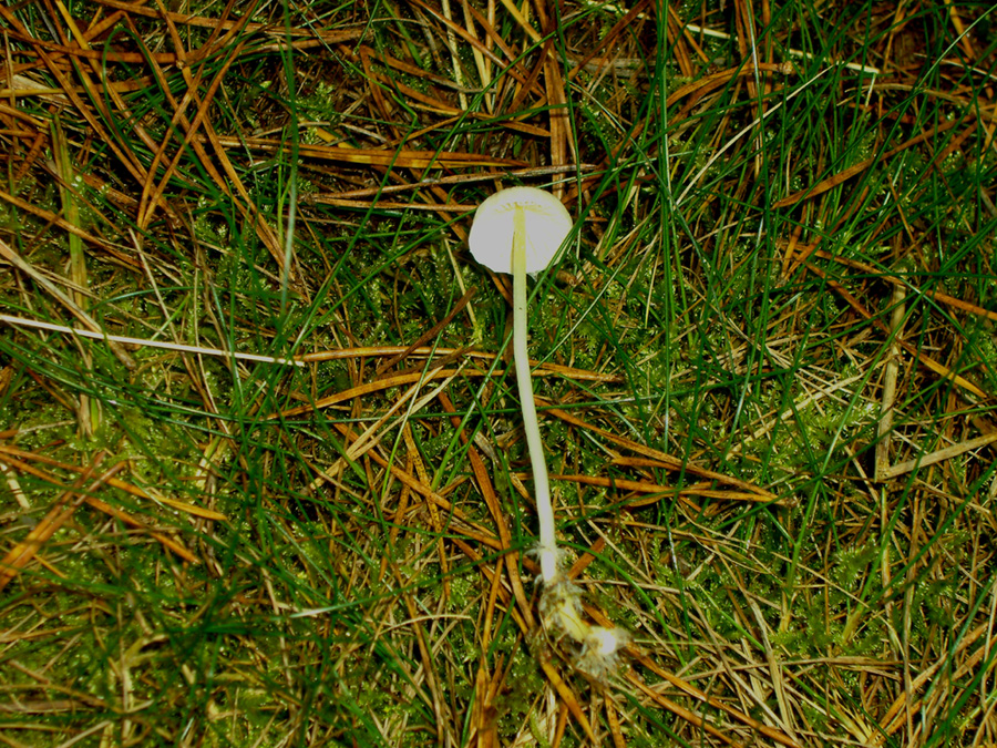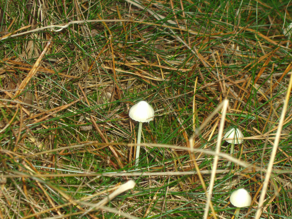 Farbe reinweiss, Hut (ca. 12 mm) durchscheinend wirkend, so als ob die Lamellen ein streifiges Aussehen vermitteln. Stiel im oberen und unteren cm gelblich, sonst weiss.