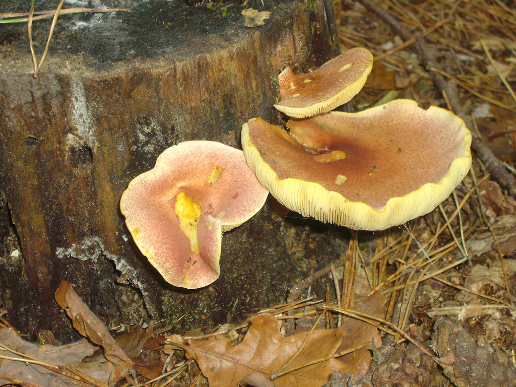Sattgelbes Fleisch & Lamellen, der Hut wirkte wie violett angesprayt.