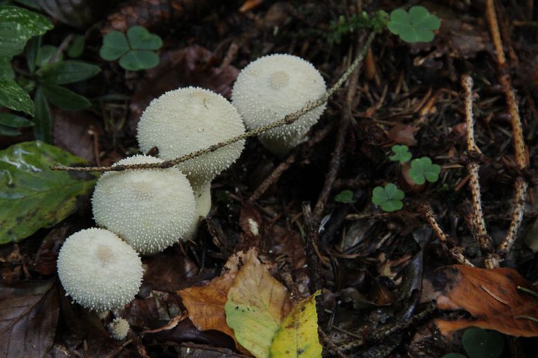 Diese beiden Exemplare hab ich als Flaschen-Stäubling (lycoperdon perlatum) auf Bild 1 und Birnen-Stäubling (lycoperdon pyriforme) auf Bild 2 bestimmt.
