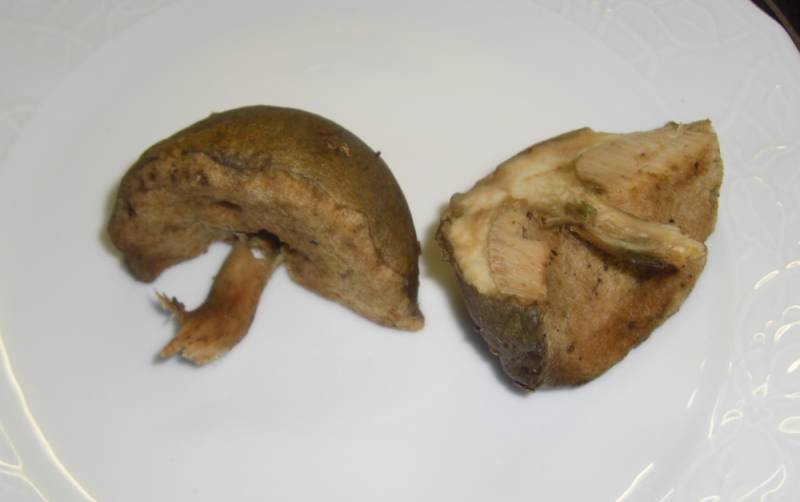 Der Hutdurchmesser ist ca. 7-8cm, bei Druck auf die Röhren oder im Schnitt verfärbt sich der Pilz nicht.