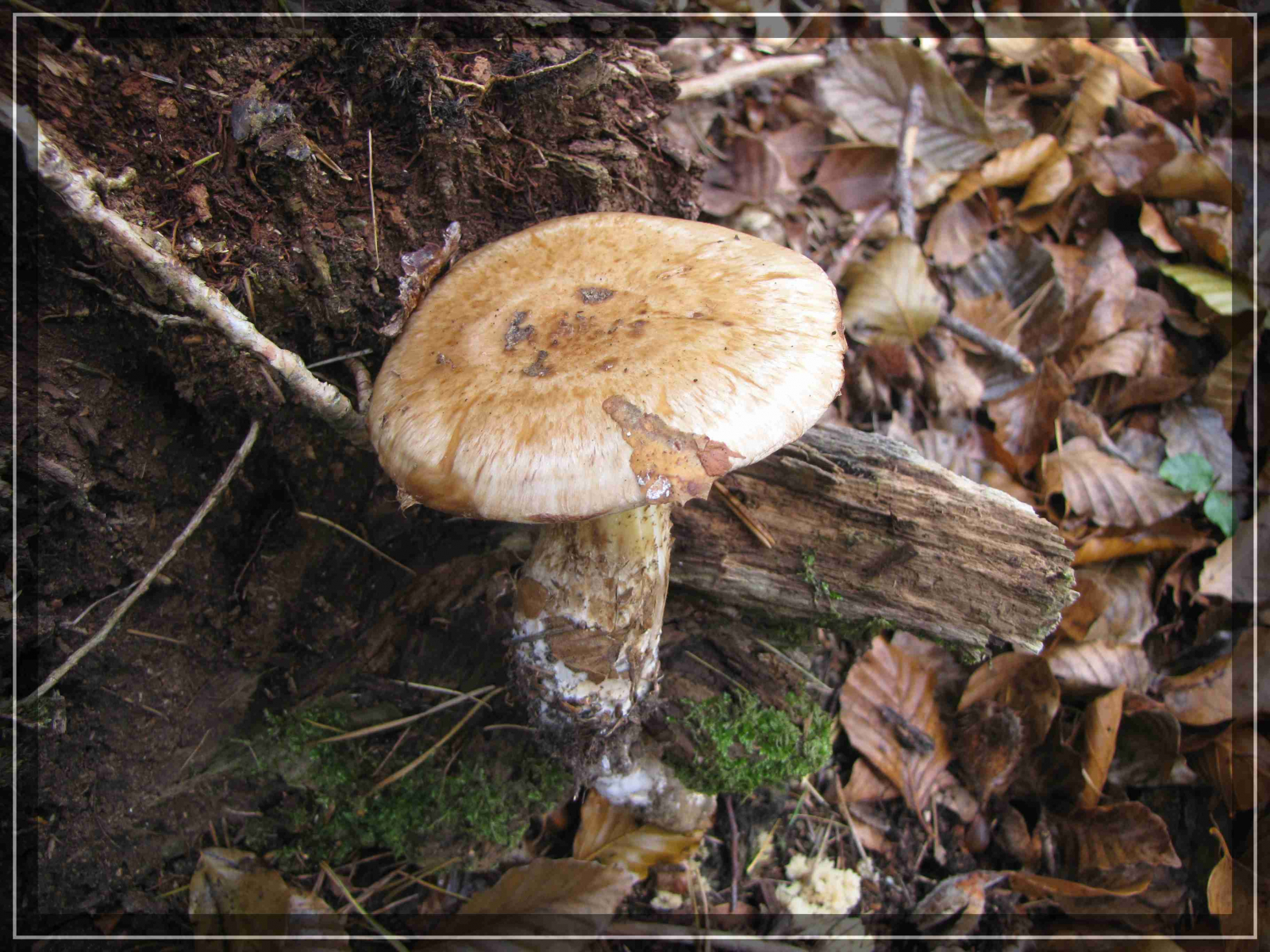 Ich hoffe man kann was erkennen. Auffallend ist der lange Stiel, der zur Hälfte im Boden steckte. (Man siehts an der Erde) Er hat sich richtig festgehalten, der Kerl.