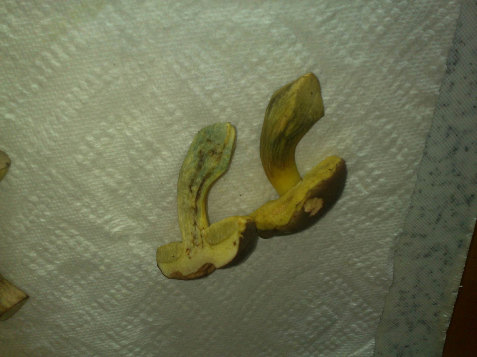 Da es meines Wissens nach keinen Pilz mit Braunem Hut und gelben Schwamm gibt der giftig ist habe ich die 2 Kameraden mitgenommen, tu mich aber schwer mit dem Bestimmen, bin mir ziemlich sicher dass es keine Maronen sind.