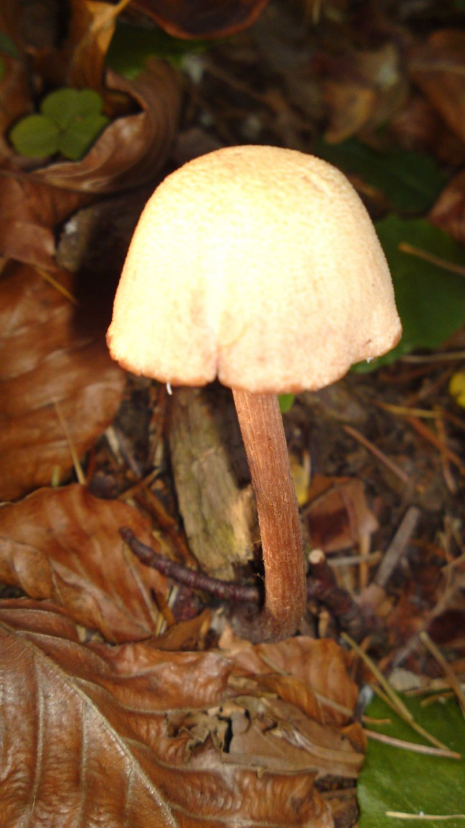 Bei Buche/Fichte im Humus (denke eher nicht auf vergrabenem Totholz), Hut beige/cremefarben, trocken, Stiel faserig, etwas ins Weinrötliche gehend (täuscht auf den Bildern etwas). In etwa 6-7cm hoch, Hut knapp 2cm breit. Geruch sehr aromatisch angenehm pilzig.