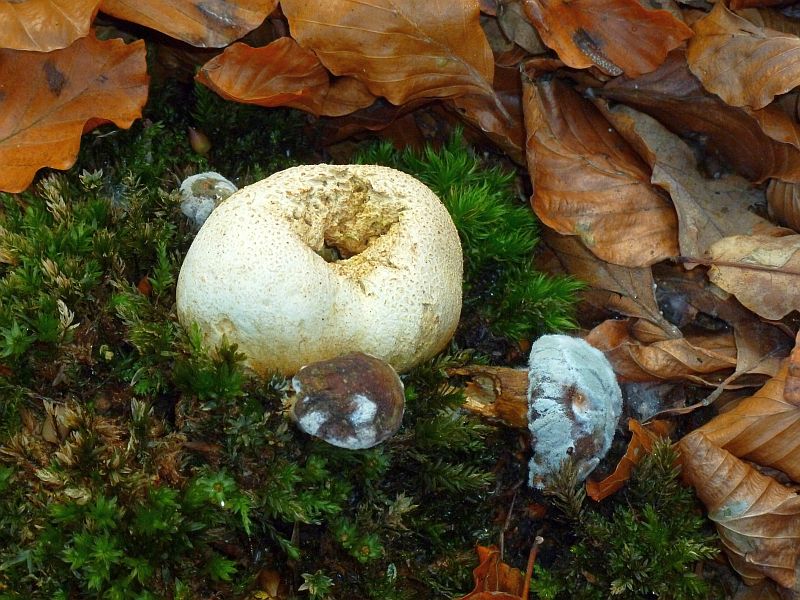 Ein kleine Auswahl vom Tage: Alter Steinpilzschlappen, Derbe Rotfußröhrlinge, Pfifferlinge, Lacktrichterlinge und verfaulte Parasitische Röhrlinge: