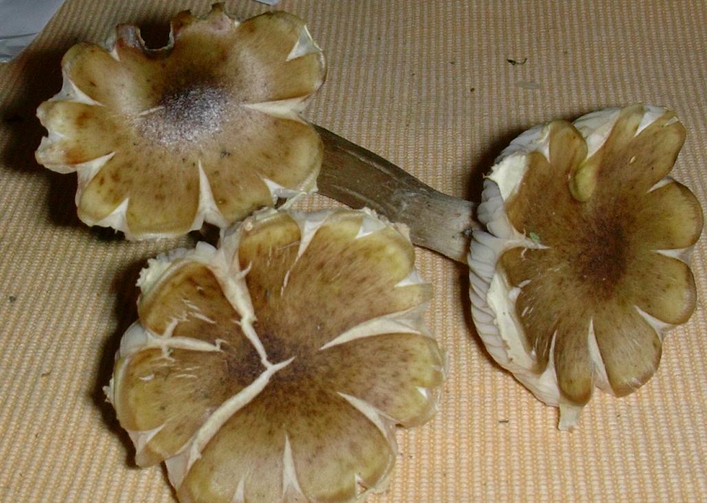 Bin noch etwas unsicher auf dem Gebiet, darum meine Frage: Kann das eine Gruppe Sägeblättlinge sein? Standen im Wohngebiet unter einem einzelnen Nadelbaum. Ein großer (ca 15 cm) stand auch noch da. Diese sind ca 5-7 cm groß, ca 7 cm hoch, lamellig. Geruch fast nicht wahrnehmbar. Den Gaschmack, naja,