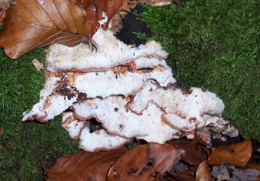 (5) Ich glaube früher nannte man alles, was so aussah, Tramete. Leider habe ich kein Foto von der Unterseite. Die Unterseite war strahlend weiß und kleinporig.