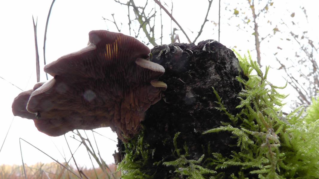 Bei den Pilzen von Bild 1 und 2 liegt der Fundort etwa 50 Meter auseinander (und auch ganz nah am Fundort von Pilz 3). Vom Substrat her müsste das entweder Kiefer oder Birke sein. Zur Dicke des Pilzes oder zur Unterseite bzw. Konsistenz kann ich leider nichts sagen.