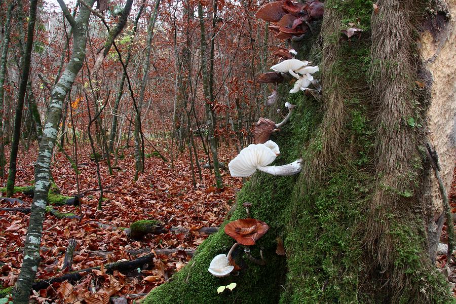 Die wuchsen am selben Baumstamm (ich glaube Buche) zusammen mit diesen Schleimrüblingen und Hallimasch (sind doch Hallimasch im Vordergrund, oder?)