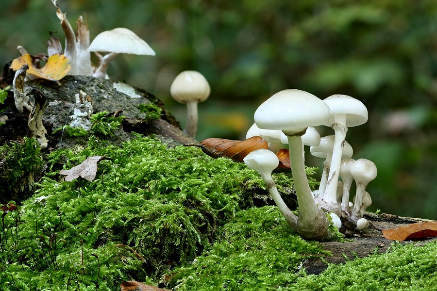Oudemansiella mucida kann durchaus in großen Büscheln wachsen.