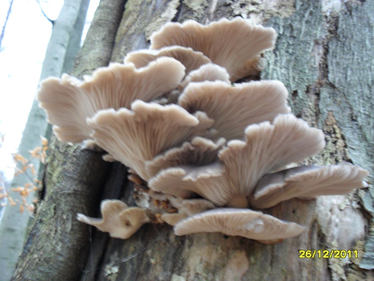 • Hallo, bei der Unterscheidung von Austern- und Lungenseitlingen halte ich mich an den Geruch. Bei fehlendem Anisgeruch hake ich sie einfach unter Austernseitling ab. Um sie genauer zu unterscheiden, fehlt mir das Wissen und die Hardware. Wie stark der Anisgeruch bei Lungenseitlingen ist, weiß ich allerdings nicht. Ich kenne Austernseitlinge auch nur hell- bis graubraun, so sahen auch die meiner Kultur aus. Das Bild von dem "Seitlingsinferno" konnte ich gestern machen. Da wurde mal eine offensichtlich doch nicht so ganz ausgebrannte Kultur entsorgt. Und jetzt das! Die Fruchtkörper haben teilweise 20 cm Durchmesser.