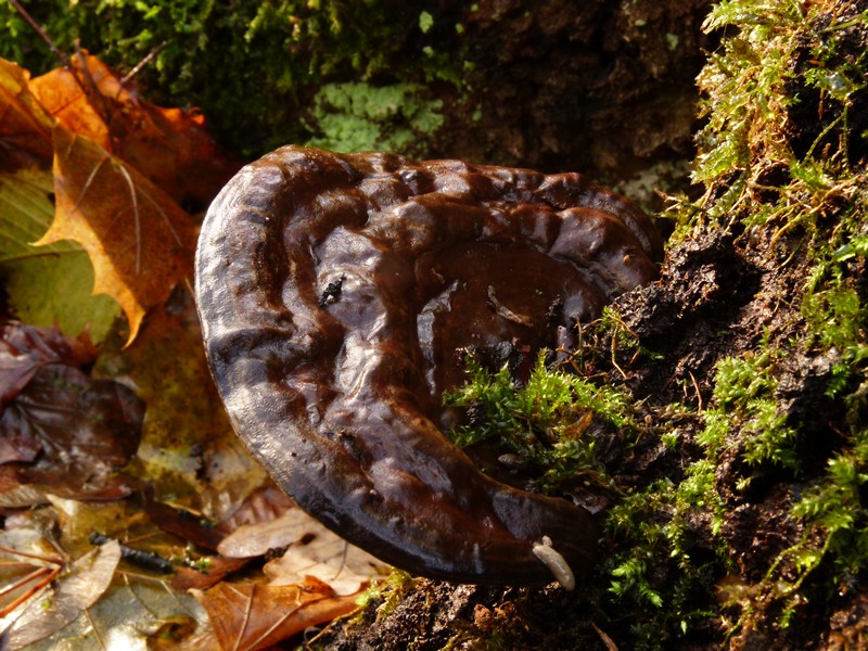 ChrisDas ist sicher der Flache Lackporling (Ganoderma lipsiense), den ich gerne als "Kakaopilz" bezeichne, weil er häufig an der Oberseite von seinen schokoladebraunen Sporen bedeckt ist. Bei deinen Regenexemplaren ist dies nicht der Fall.