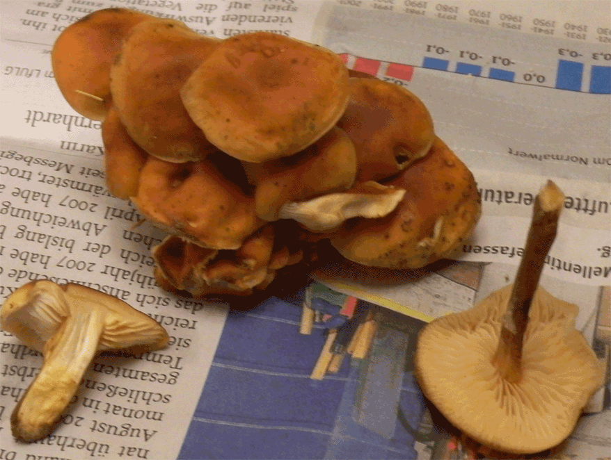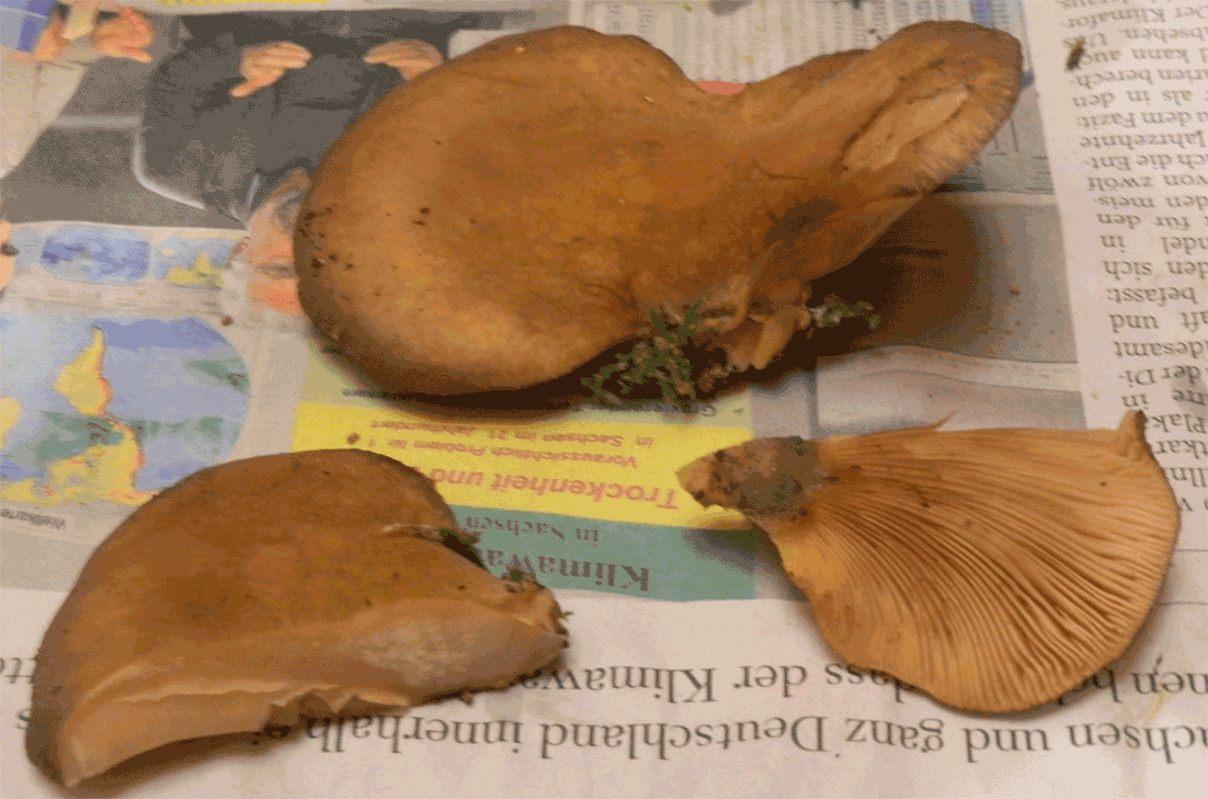 Was diesen angeht bin ich ziemlich ratlos zuerst dachte ich eventuell ein Austernseitling.Was mich besonders irritiert, ist das wenn man auf das fleisch Druck ausübt Wasser austritt,welches sofort wieder aufgesogen wird wenn der Druck nachlässt.