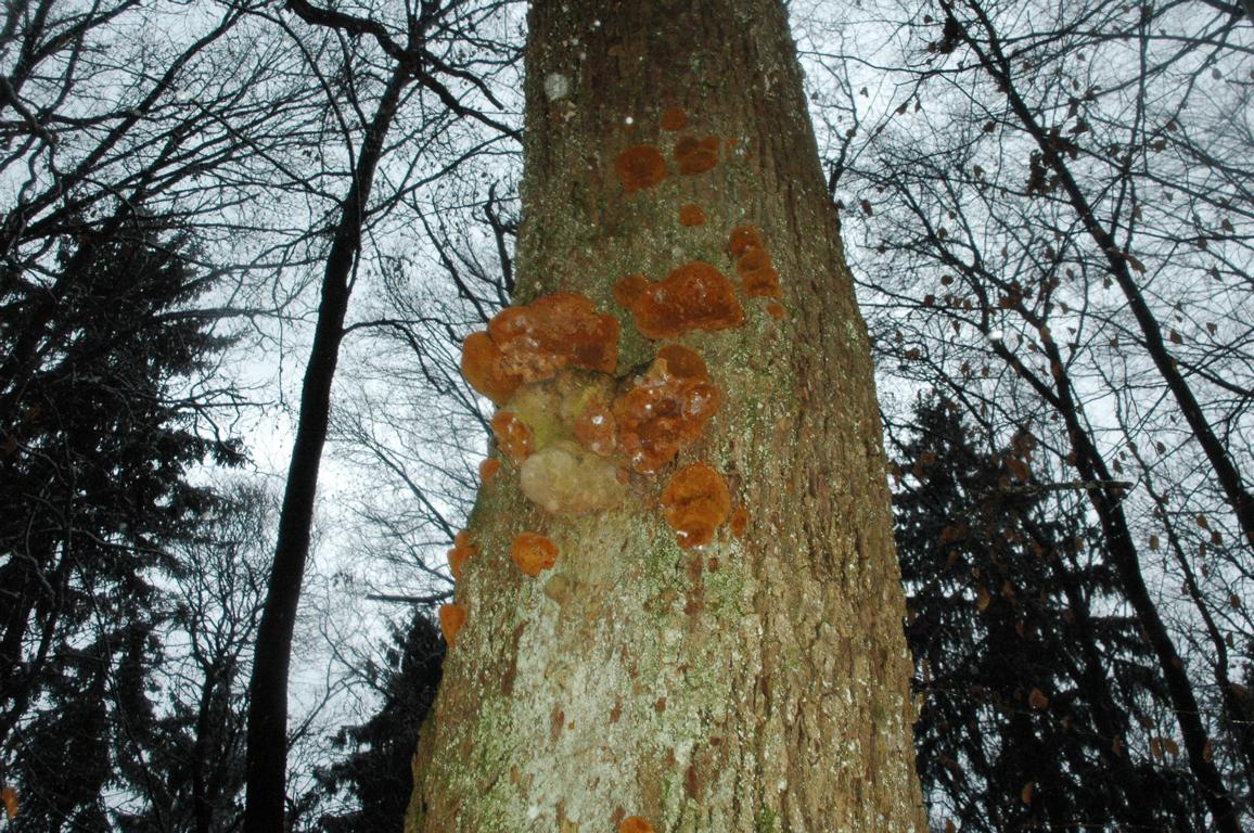 Vielleicht hat Buliz statt Stereum hirsutum den Verwechslungspartner von Stereum ostrea, nämlich den Samtigen Schichtpilz (Stereum subtomentosum) gemeint?