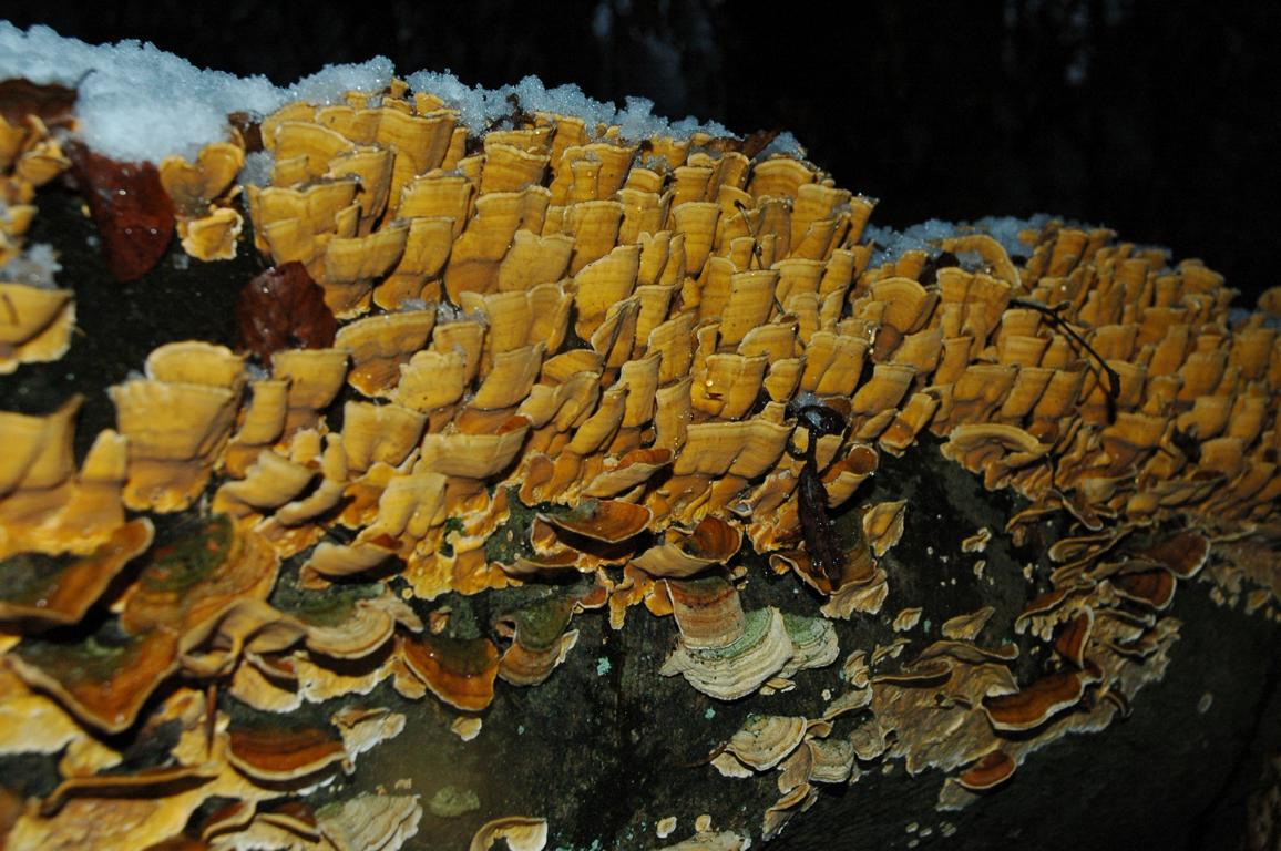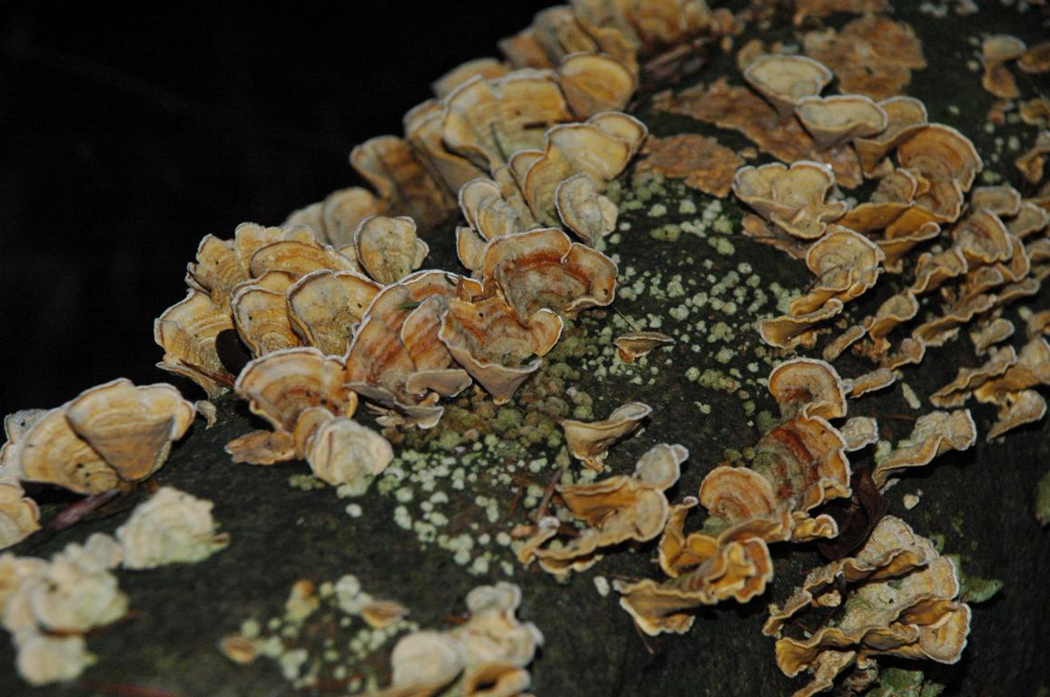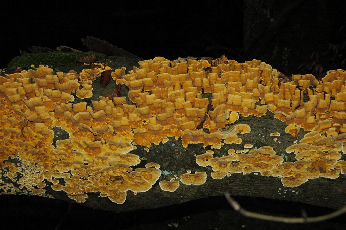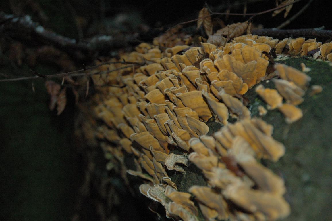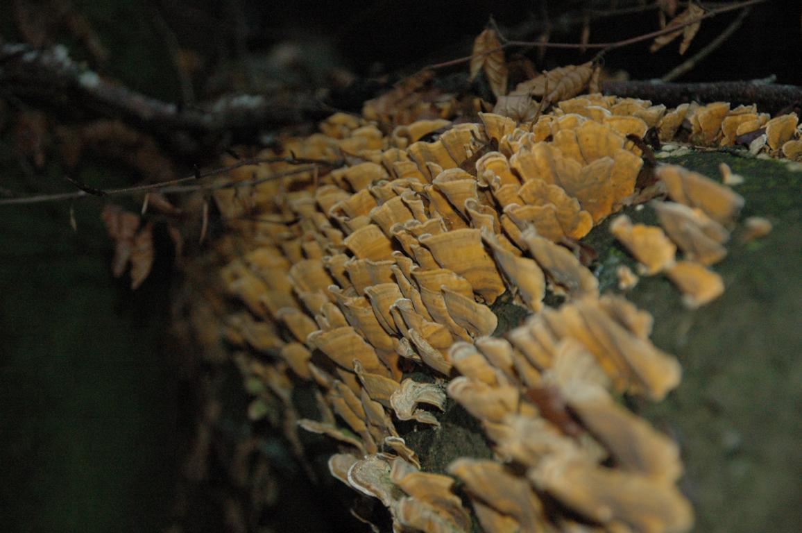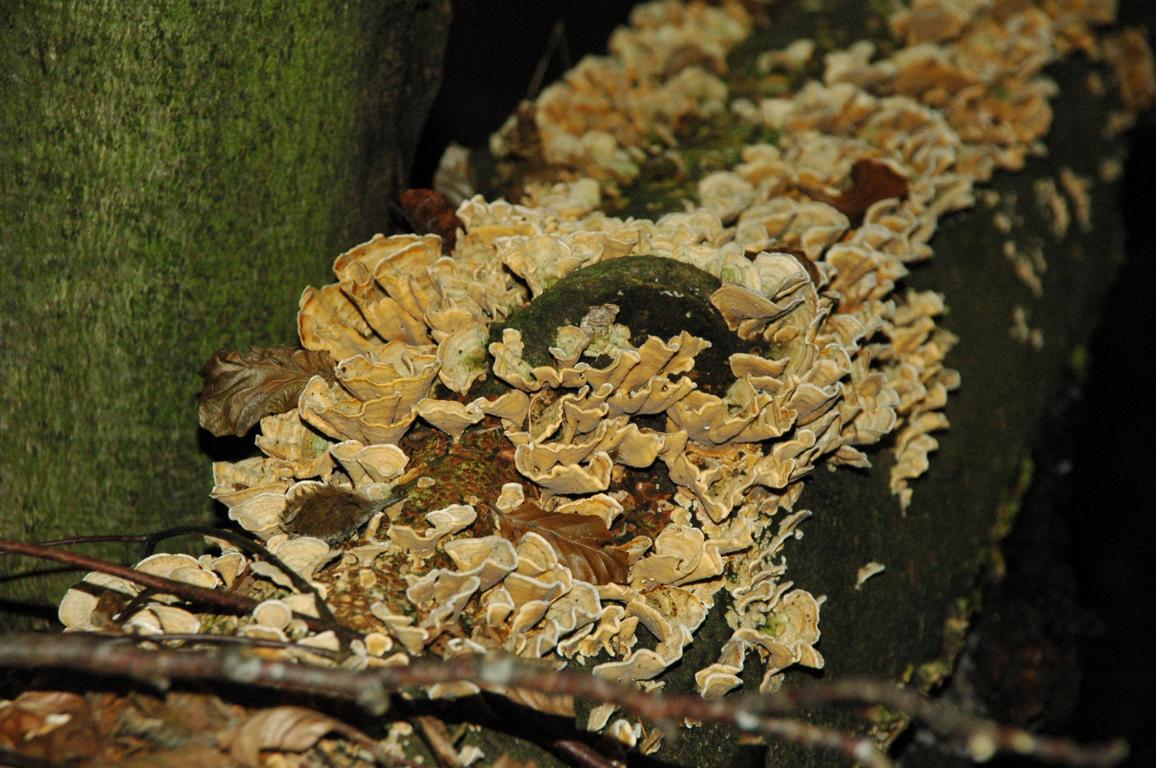 Also den Zottigen Schichtpilz (Stereum hirsutum) kann man m. E. vollkommen ausschließen.