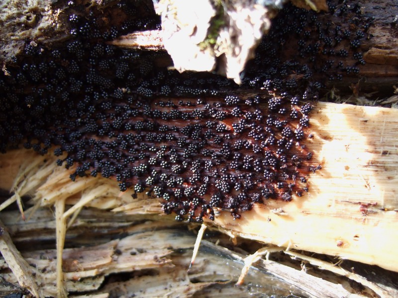 Ja, der "Pilz-Kaviar" sah nicht nur interessant, sonder sogar recht lecker aus. Etwa wie Brombeeren, bei denen man die einzeln Steinfrüchte gelöst und auf dem Baumstamm verteilt hätte. Sah wirklich ansprechend aus. Bis dato konnte ich leider noch nicht feststellen, um welchen Pilz, wenn es denn einer sein sollte, es sich genau handelt.