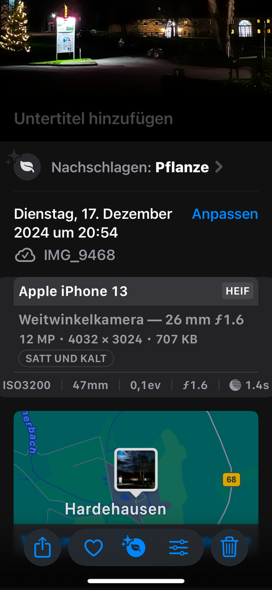Mich würde der ISO-Wert interessieren, falls sowas die Kamera in den Eigenschaften speichert.