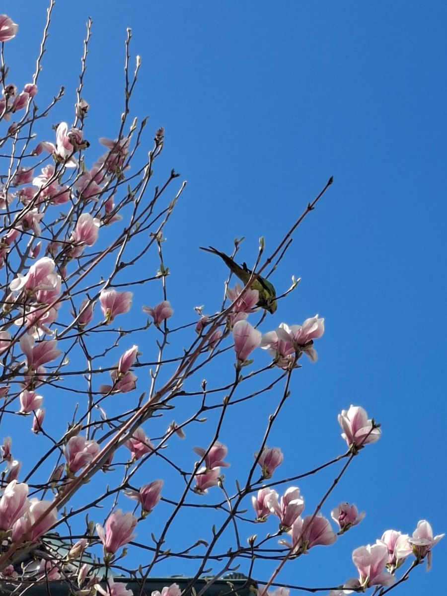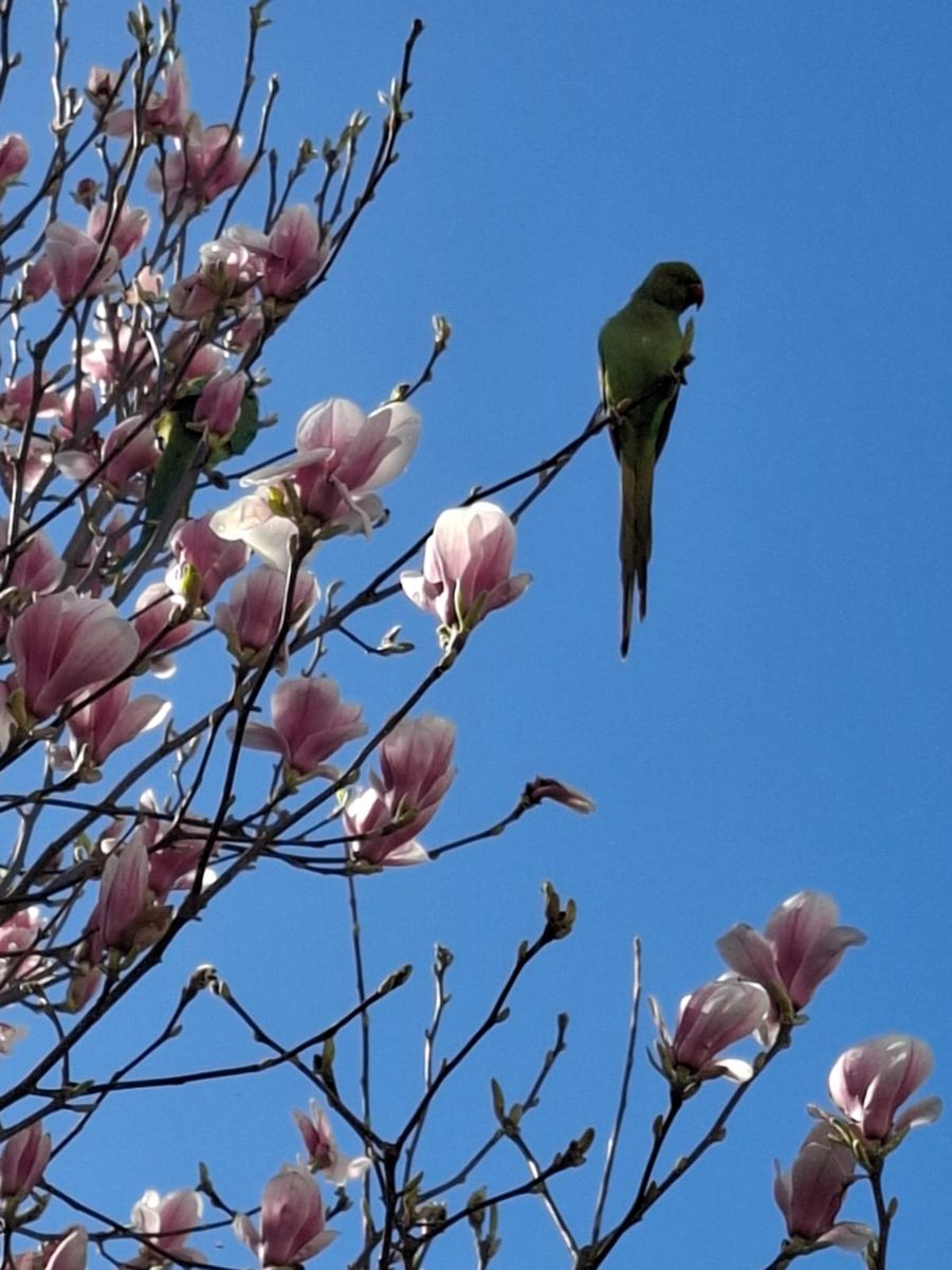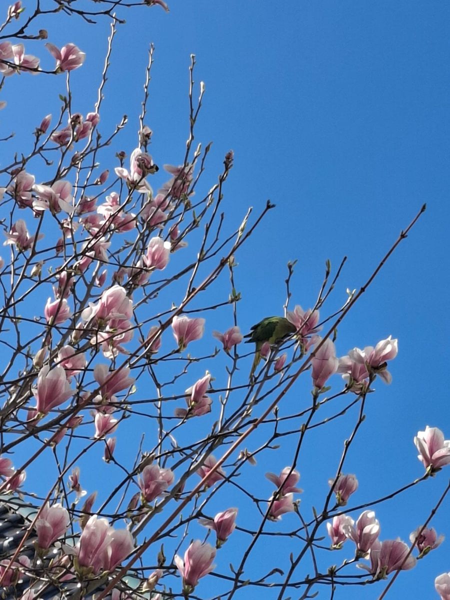 Also, die Magnolien stehen in Vollblüte, und die heimischen Papageien sind bester Laune