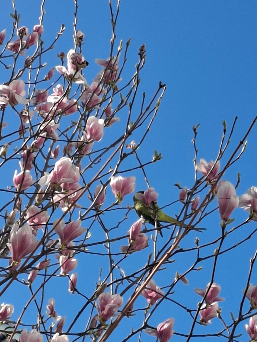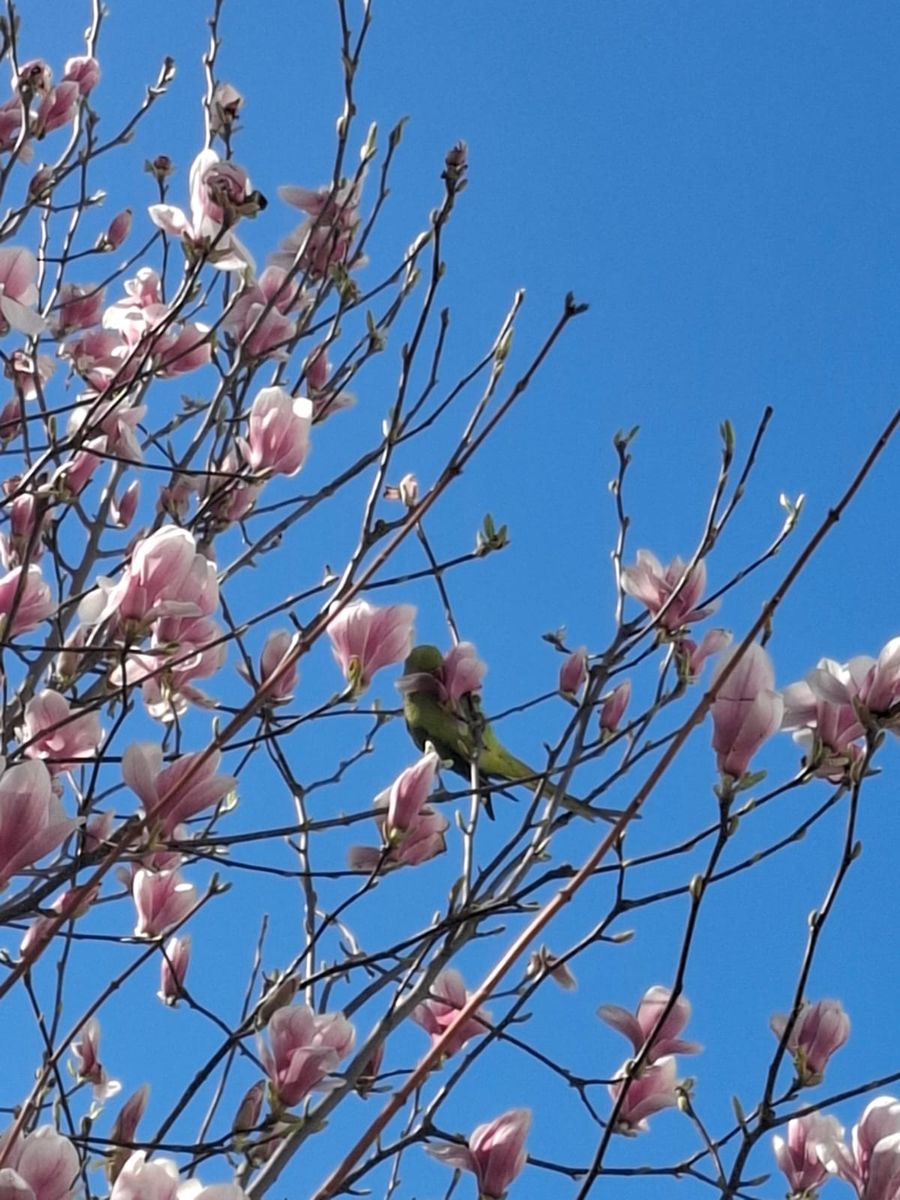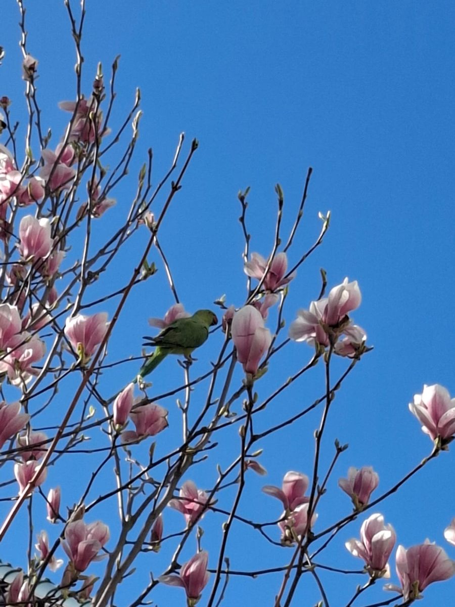 Also, die Magnolien stehen in Vollblüte, und die heimischen Papageien sind bester Laune