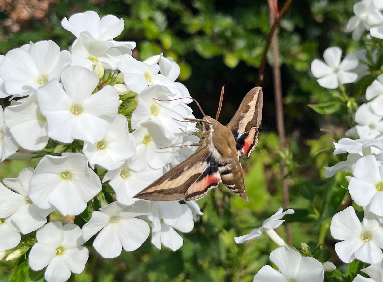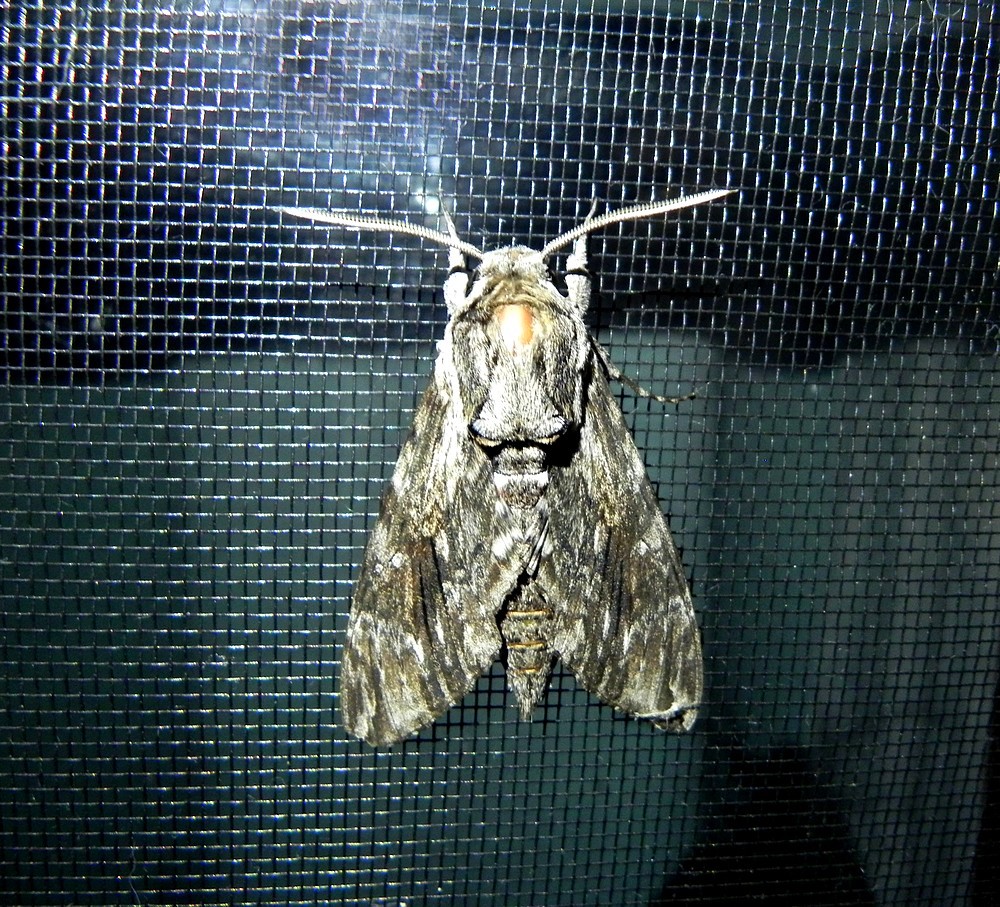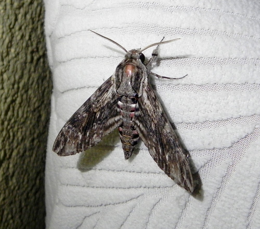 (...) wegen des rosa-schwarzen Hinterleibs und der Größe muss ich da an den Ligusterschwärmer (Sphinx lugustri) denken. (...)