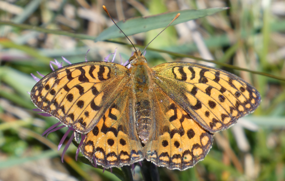 Meine Bestimmungs-App "ObsIdentify" sagt dazu: Feuriger Perlmuttfalter