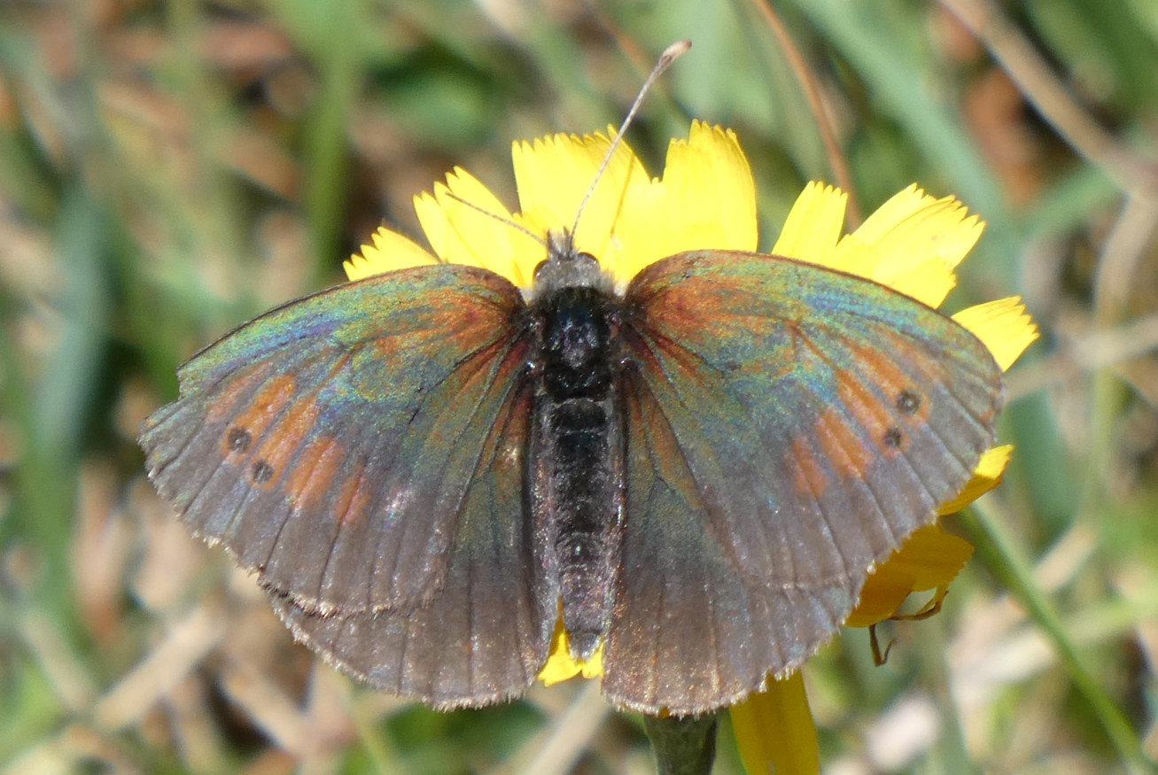 Der hier ist wohl der Schillernde Mohrenfalter (Erebia tyndarus):