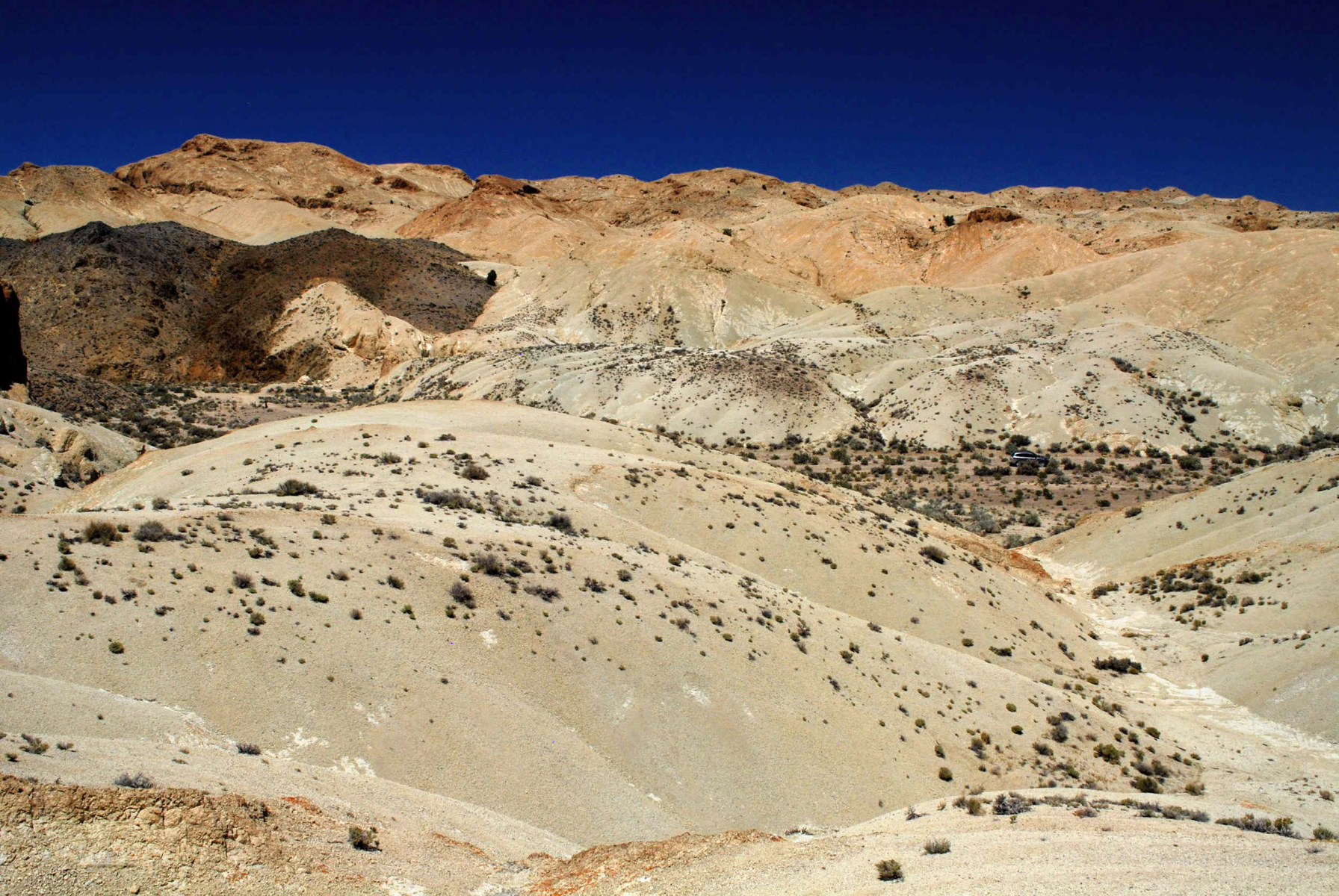 Im Bild sind Hügel aus Bimskies zu sehen. Jede Katze würde sich freuen. In der Gegend gab es Vulkanismus.